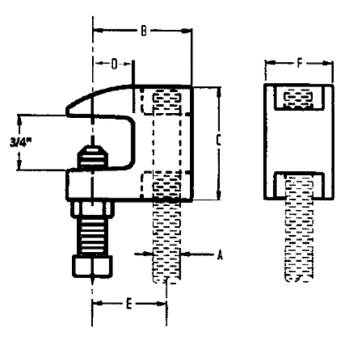 JUNIOR TOP BEAM CLAMP – Designed to attach hanger rod to the top flange of a beam or bar joist where flange thickness does not exceed 5/8 of an inch.